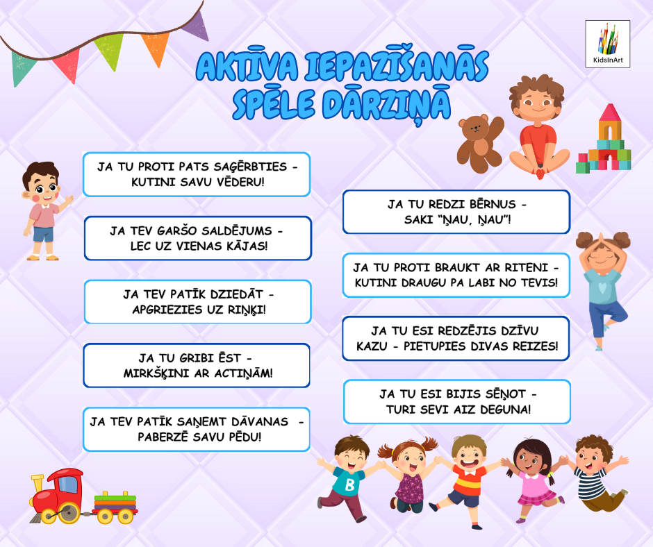 🛝Spēles mērķis ir uzzināt vairāk vienam par otru, kārtīgi izkustēties un jautri pavadīt laiku.