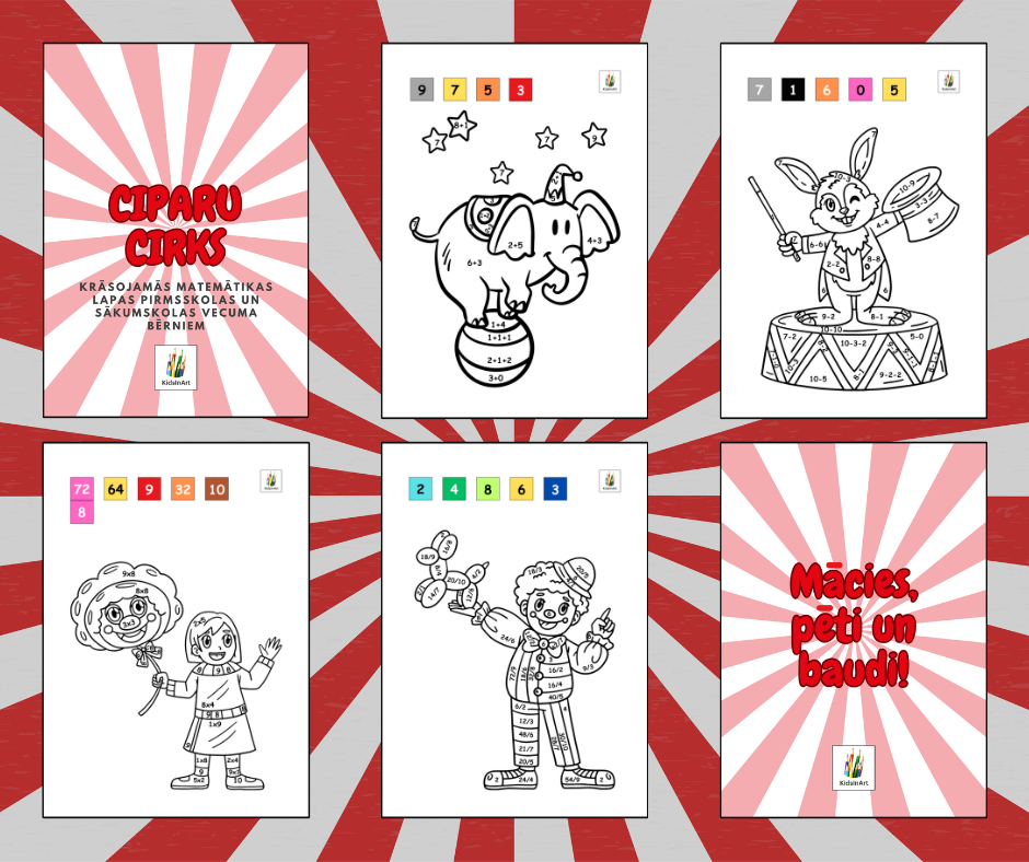 🎪 Materiāls ir piemērots saskaitīšanas, atņemšanas, reizināšanas un dalīšanas prasmju nostiprināšanai.