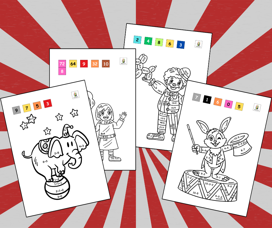 Krāsojamās darba lapas bērniem "Ciparu cirks".