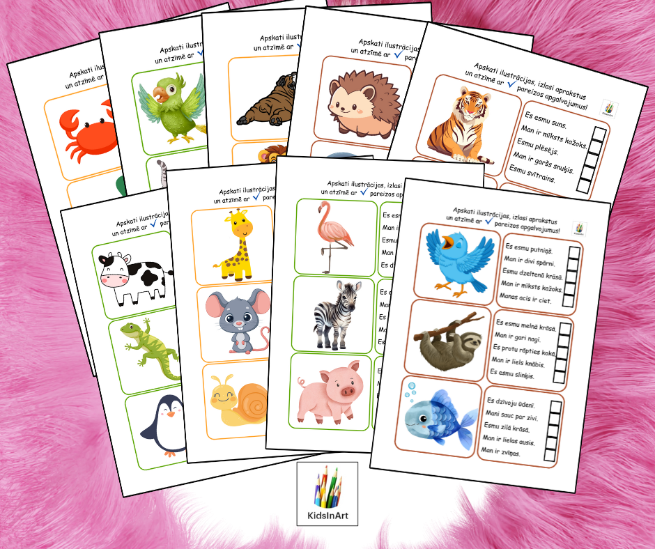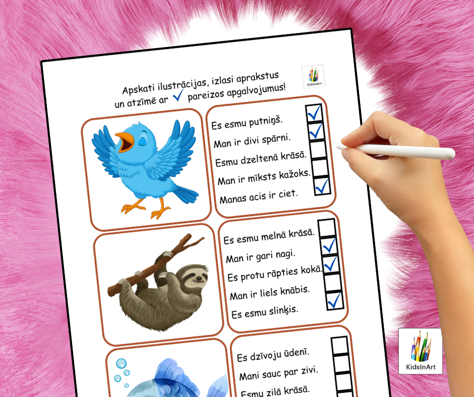 🐯 Apskati ilustrācijas, izlasi aprakstus un atzīmē ar ☑️ pareizos apgalvojumus!