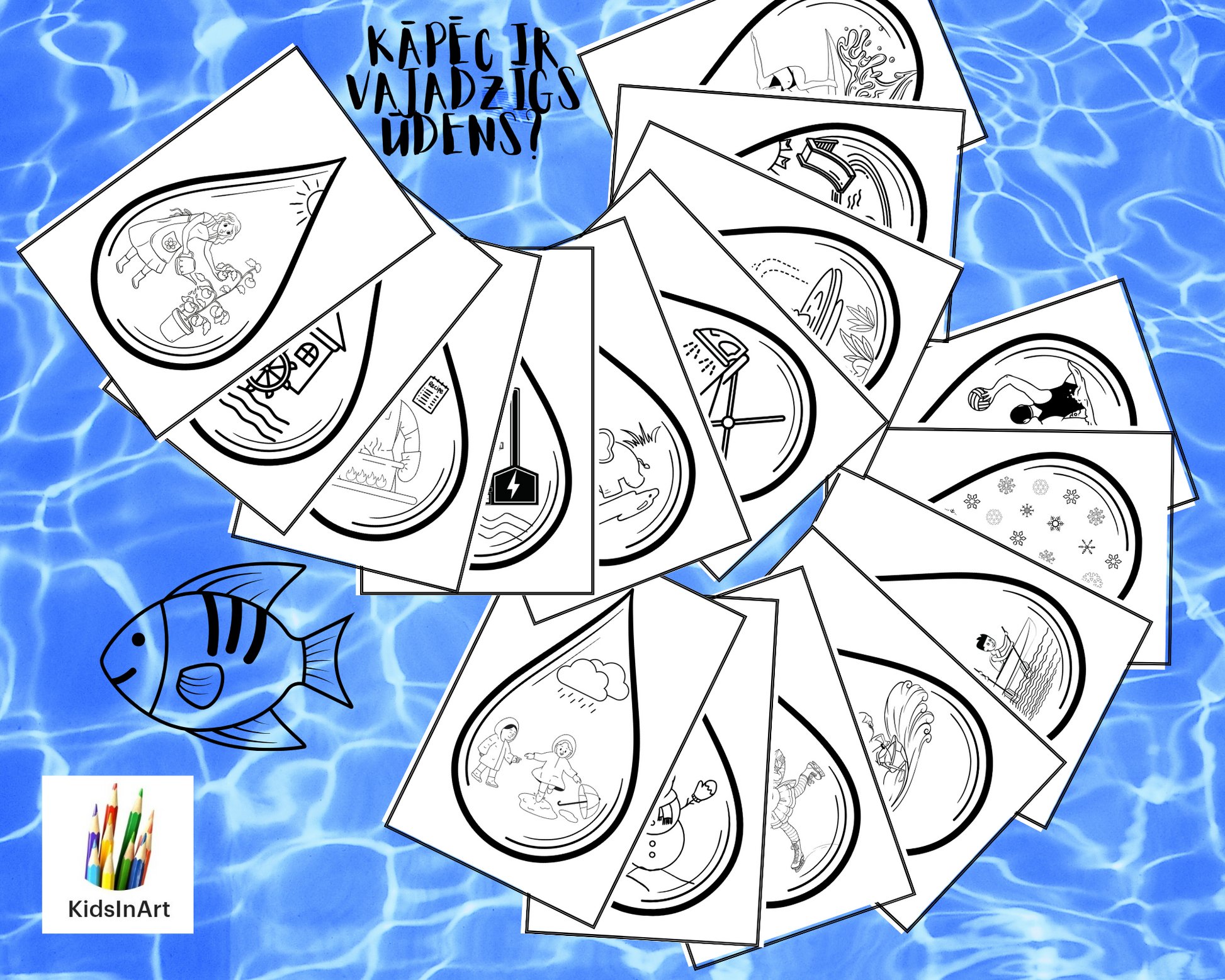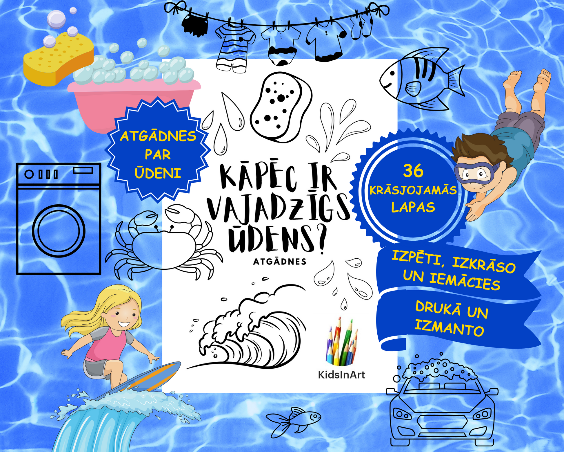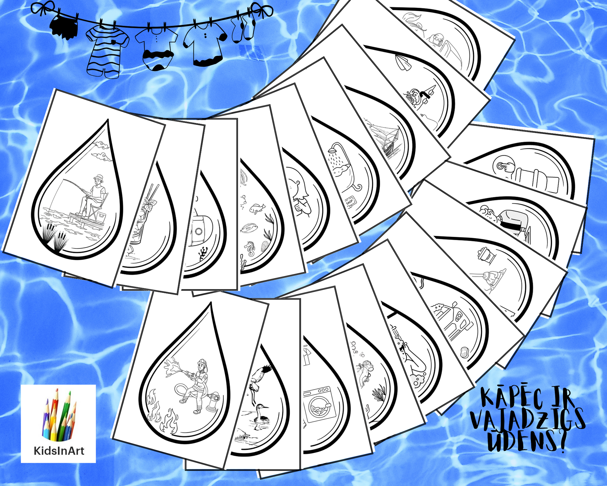 "Kāpēc ir vajadzīgs ūdens?" - 36 atgādnes par ūdens pielietojumu, kuras var tikt izmantotas arī kā krāsojamās lapas. 🥽🩱🛀🚣♂️🏄♀️