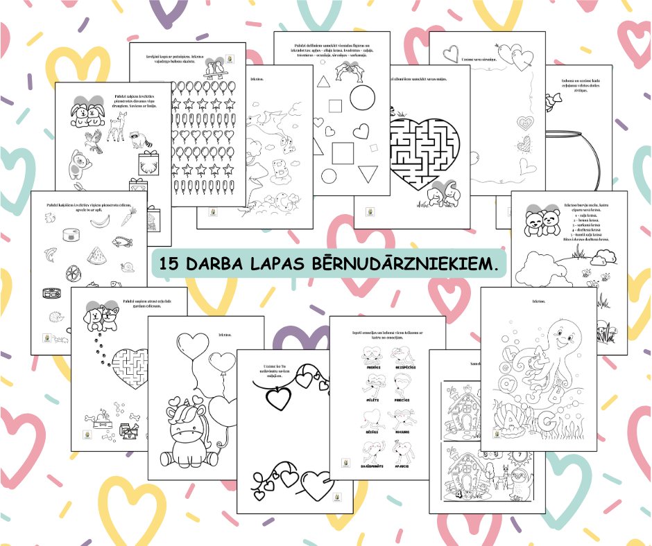 Darba lapas pirmskolēniem Valentīndienas noskaņās "Mīļu un jauku sirsniņdienu!"