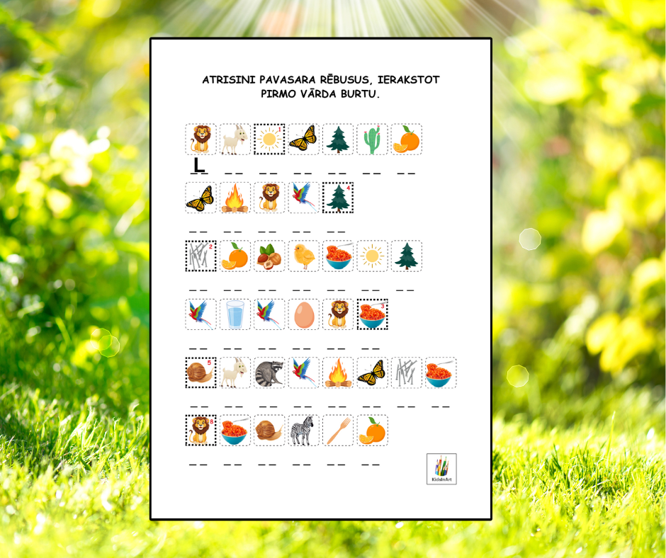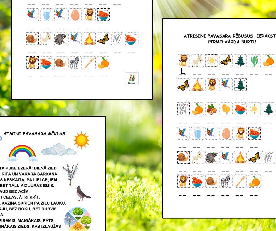 🧩 Atrisini pavasara rēbusus 3 lpp. + 1 lpp. ar papildus uzd.