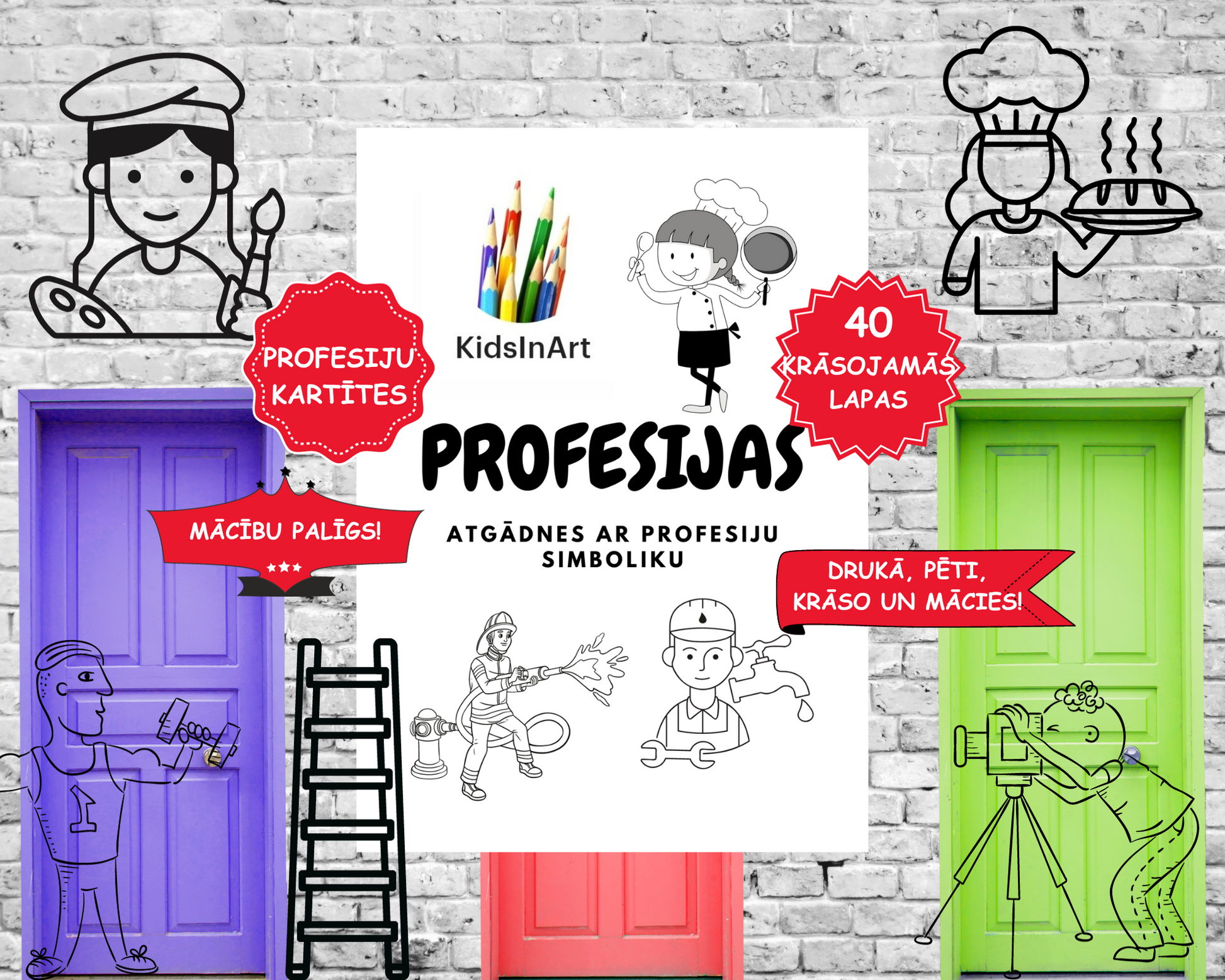 👩🍳 Kartiņas ar amatu/profesiju saistītiem priekšmetiem/rīkiem.
