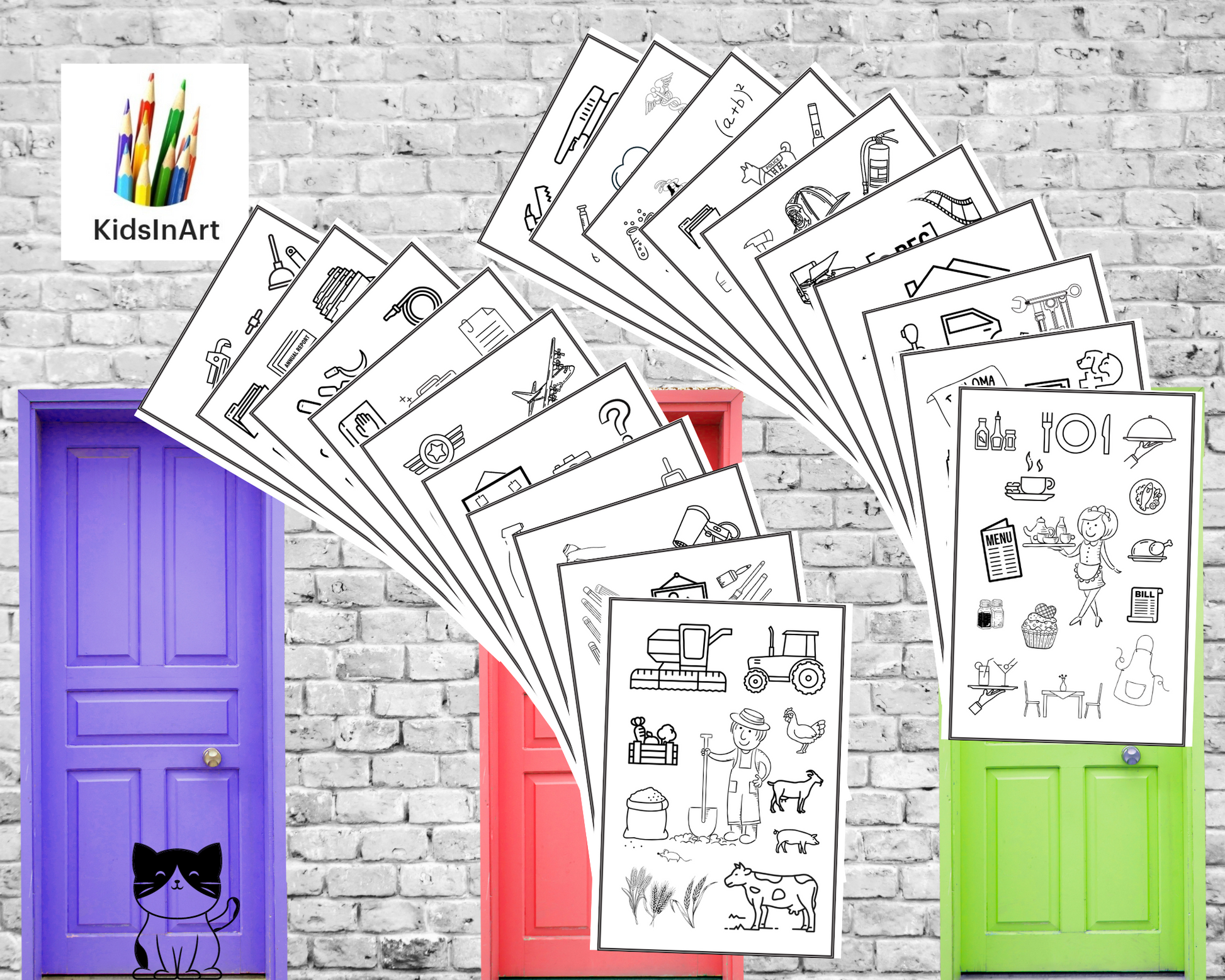 Profesijas_melnbaltās 👨🔧👨✈️👷