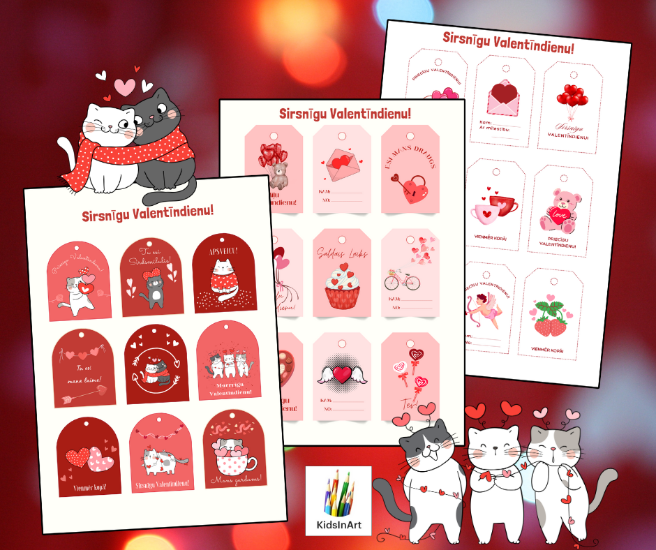 Krāsainie apsveikuma piekariņi/ kartiņas "Sirsnīgu Valentīndienu!" 💖