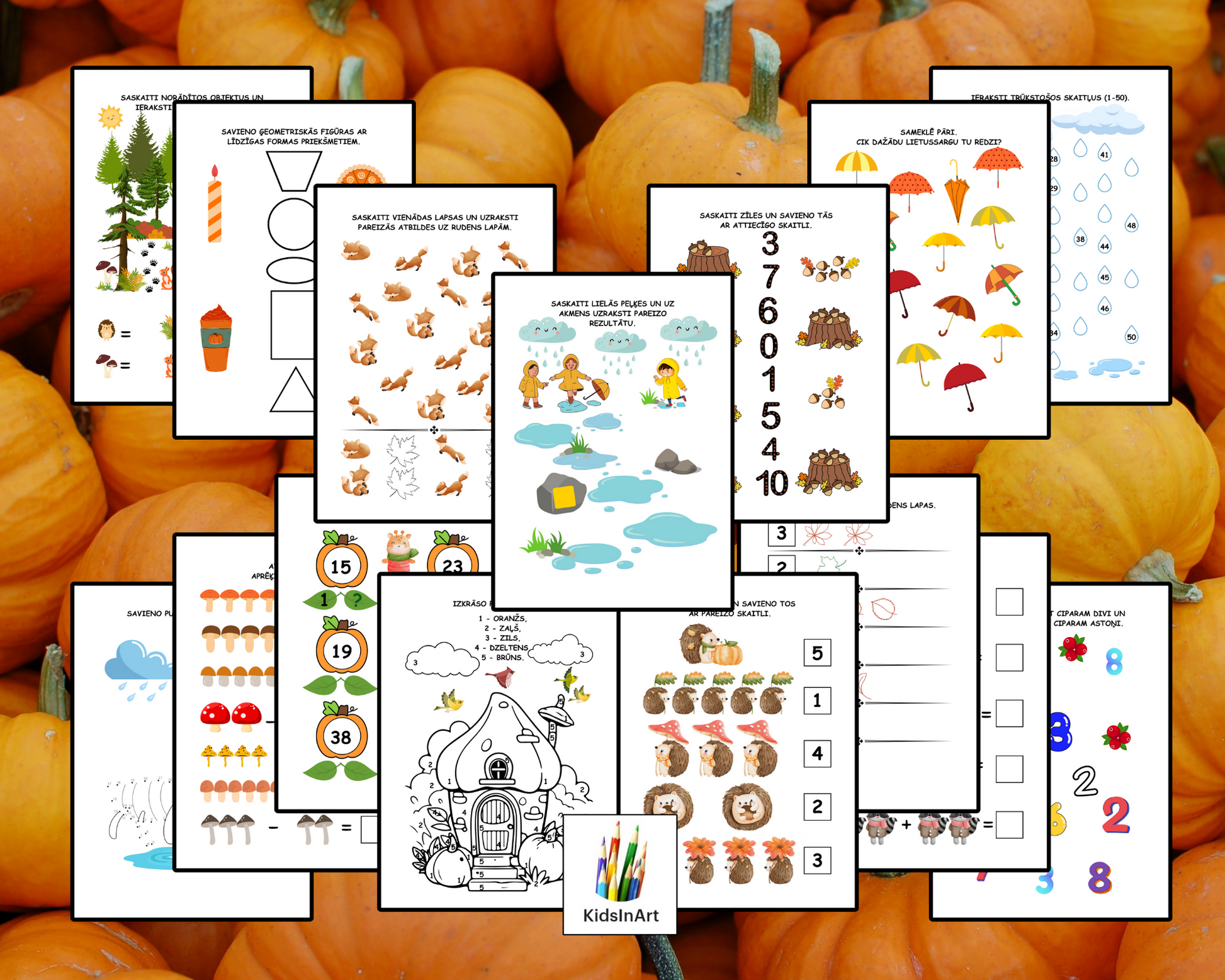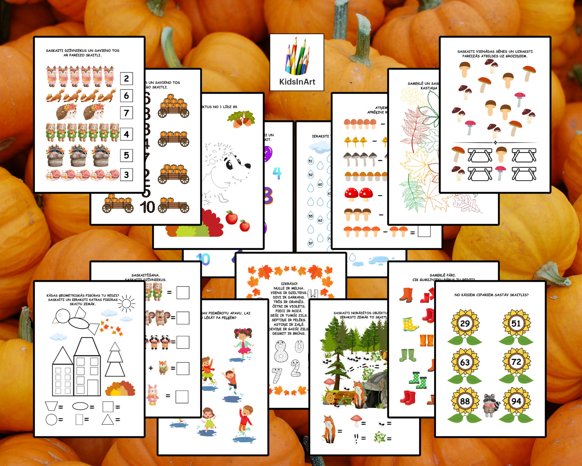 Darba lapas pirmsskolas vecuma bērniem "SKAITĀM RUDENI"!